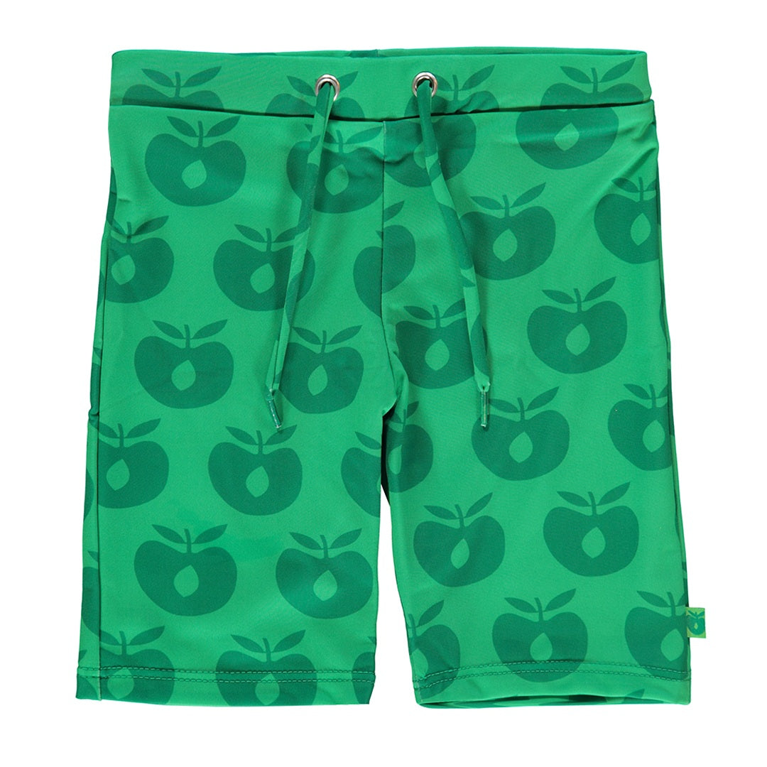 Swimpants with short leg and Apple print.The pants has drawstring and lace.Nice to know:Småfolk UV-swimwear protects the child with UPF50+The UV factor is knitted into the fabric. To keep the coloring of the swimwear,SMÅFOLK recommends you to rinse the swimwearcold tap water, avoid drying in direct sunlightand avoid tumble dry.To keep the smooth surface of the swimwearavoid contact with rough surfaces.Have fun in the water with your SMÅFOLK swimwear…