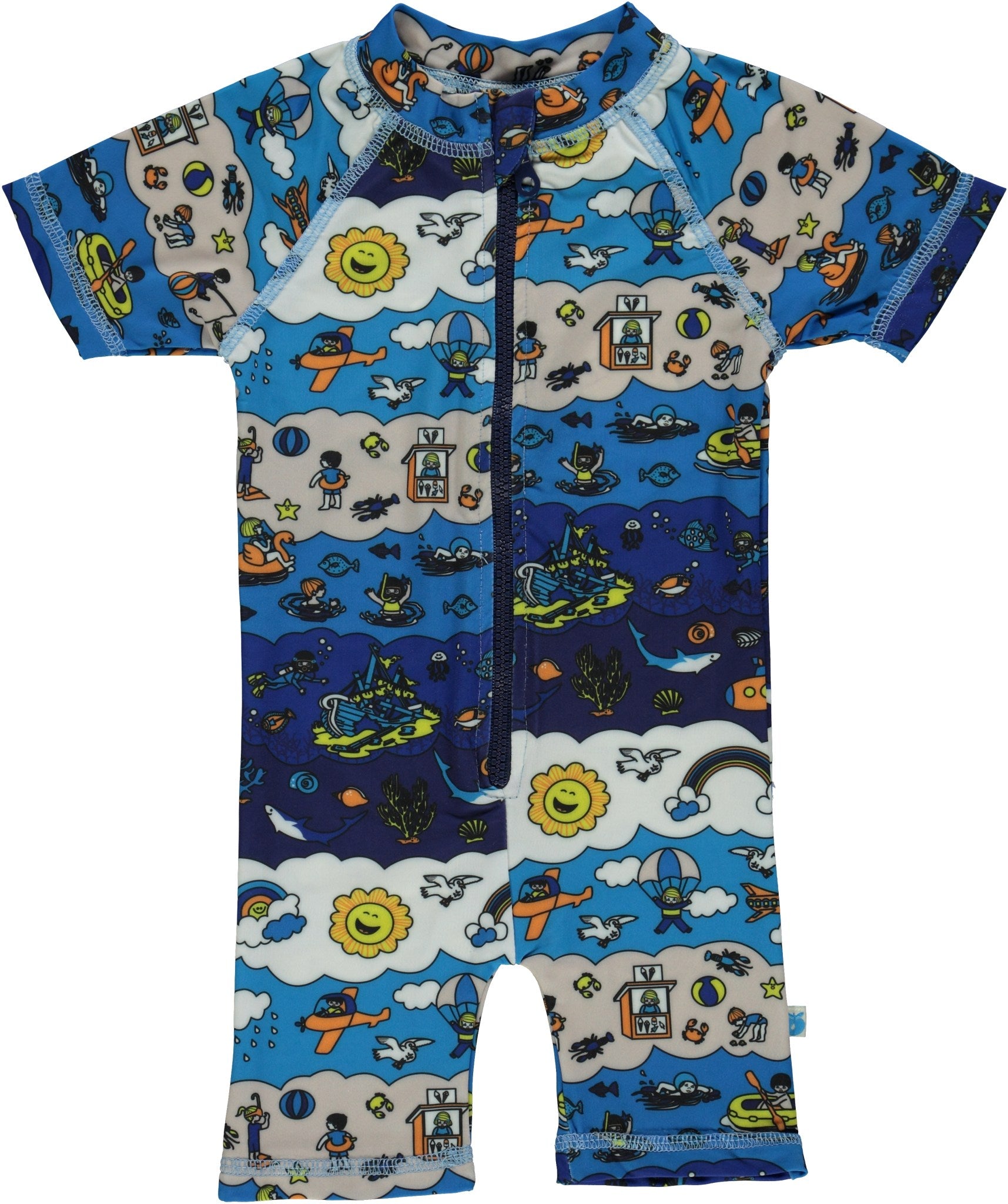 UV50 Suit with Landscape print.The suit has short sleeves and short legs,and closes with zipper.Nice to know:Småfolk UV-swimwear protects the child with UPF50+The UV factor is knitted into the fabric. To keep the coloring of the swimwear,SMÅFOLK recommends you to rinse the swimwearcold tap water, avoid drying in direct sunlightand avoid tumble dry.To keep the smooth surface of the swimwearavoid contact with rough surfaces.Have fun in the water with your SMÅFOLK swimwear…