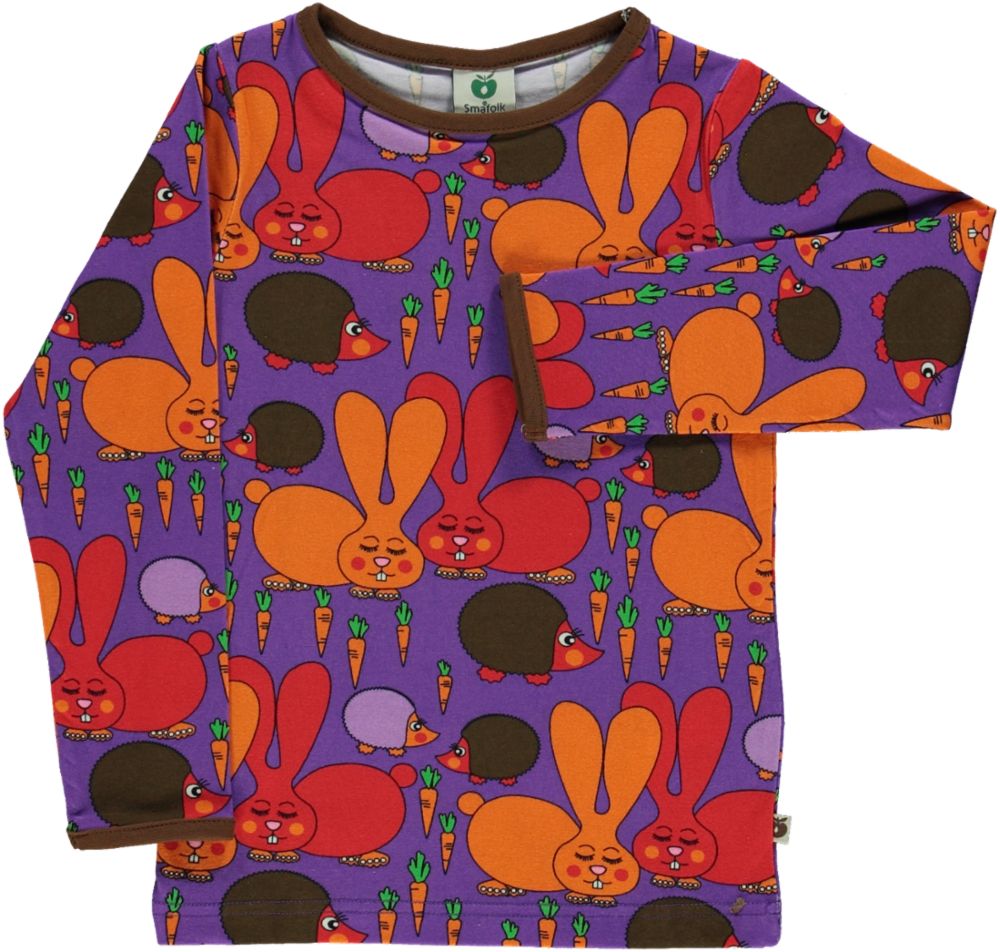 Das T-Shirt wurde in Dänemark entworfen und aus bester 100 % Bio-Baumwolle und Elastan hergestellt, was das T-Shirt dehnbar macht, weich und behält gleichzeitig die Passform. Das T-Shirt von Småfolk ist in schönen hellen Farben, in denen Ihr Kind spielen, wachsen und seine Fantasie erforschen kann, während sich das Kind frei bewegen kann. Langärmliges T-Shirt mit Hasen- und Igel-Print im ganz eigenen, einzigartigen Retro-Stil von Småfolk.