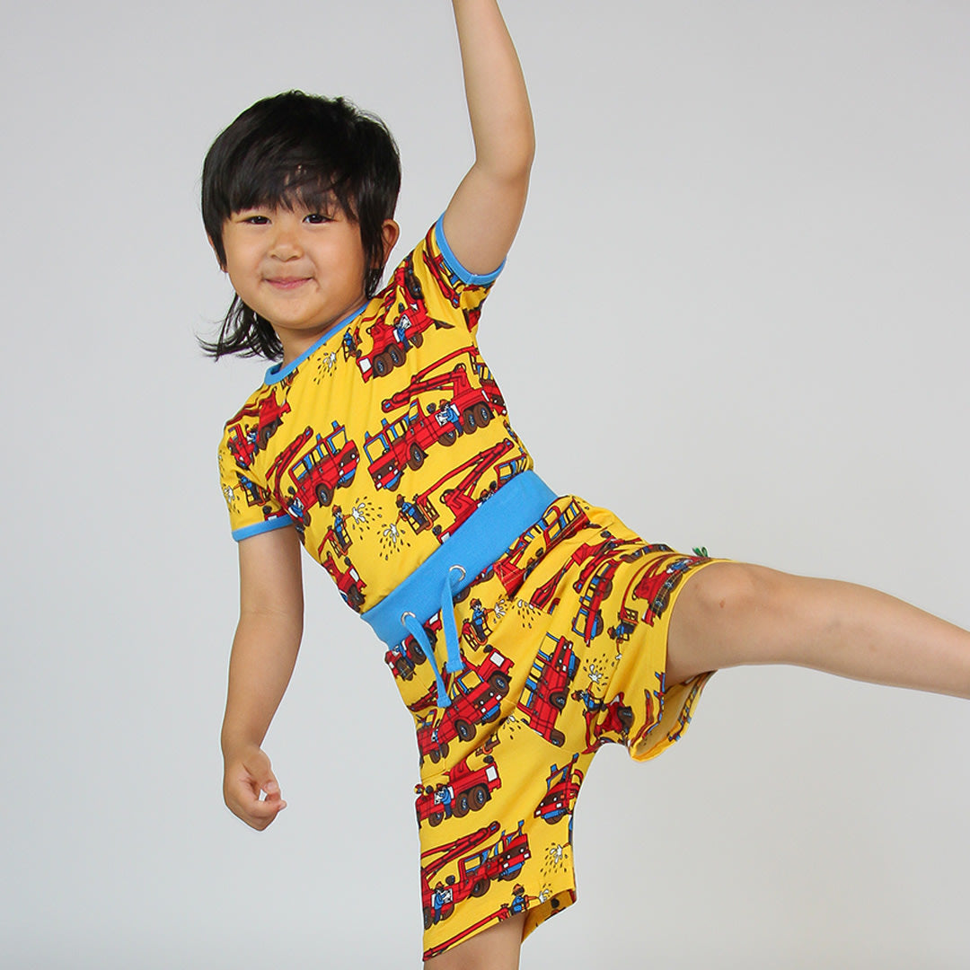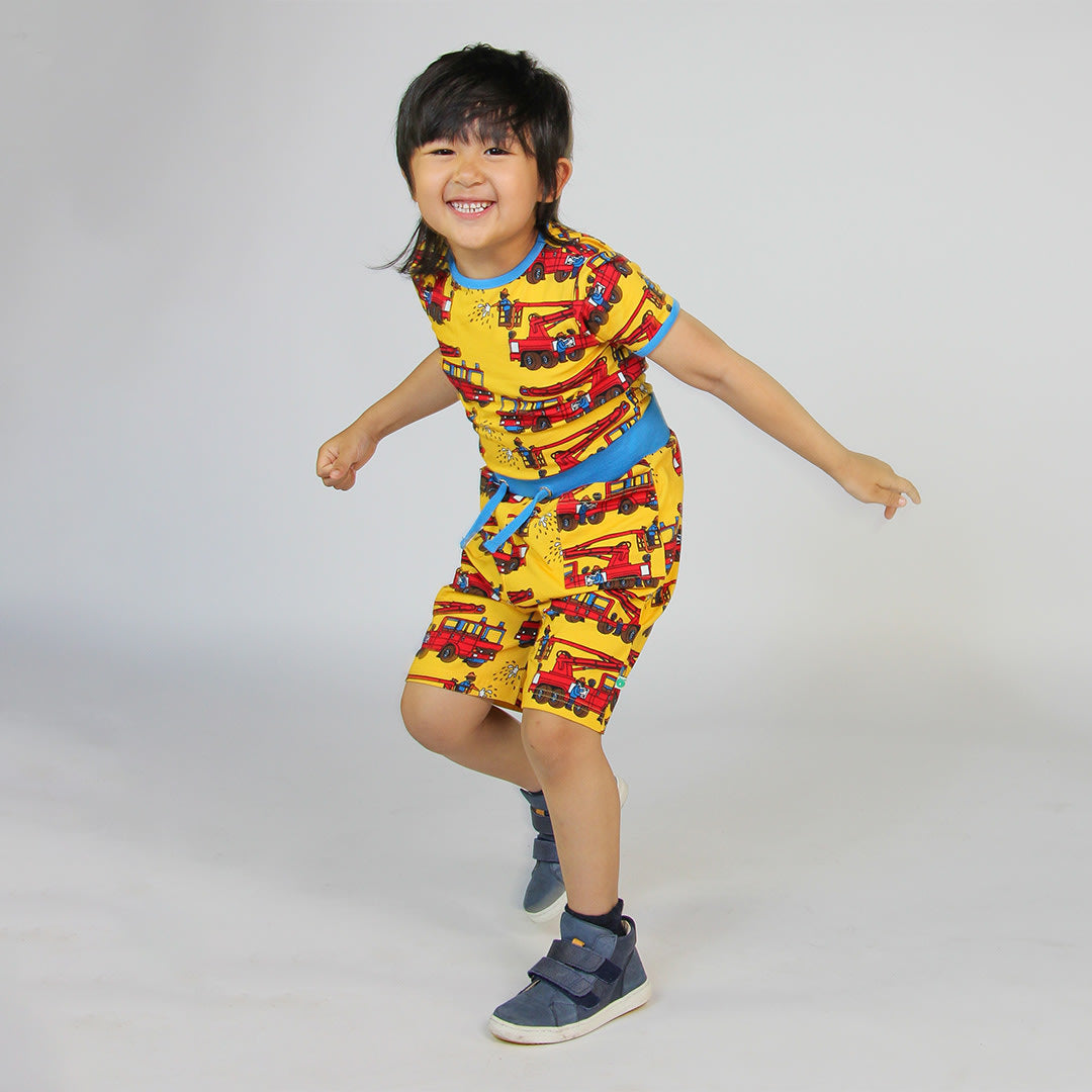 T-shirt mit Feuerwehrauto, hergestellt aus organischem und dehnbarem Baumwolljersey. Dieses Top ist nach OEKO-TEX Standard 100® zertifiziert, was bedeutet, dass das Top hergestellt und auf schädliche Chemikalien getestet wurde, um die Haut und Gesundheit Ihres Kindes zu schützen. Dieses T-shirt hat eine normale Passform und Rippbündchen am Hals und an den Ärmeln. Die Top von Småfolk werden in Dänemark entworfen und halten unzähligen Abenteuern und endlosen Spielstunden stand und behalten auch nach mehrmaligem Gebrauch ihre Form und Farbe.