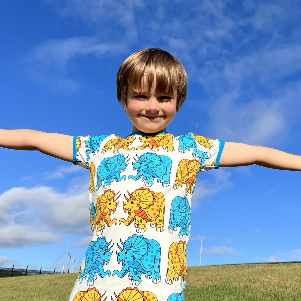 T-Shirt mit Dinosaurier-Print im ganz eigenen, einzigartigen Retro-Stil von Småfolk. Das T-Shirt wurde in Dänemark entworfen und aus 100 % bester Bio-Baumwolle und Elasthan hergestellt, was das T-Shirt dehnbar und weich macht und gleichzeitig den Sitz behält.Småfolks T-Shirts ist in schönen leuchtenden Farben mit dem Ihr Kind spielen, wachsen und seine Fantasie erkunden kann, während sich das Kind frei bewegen kann.