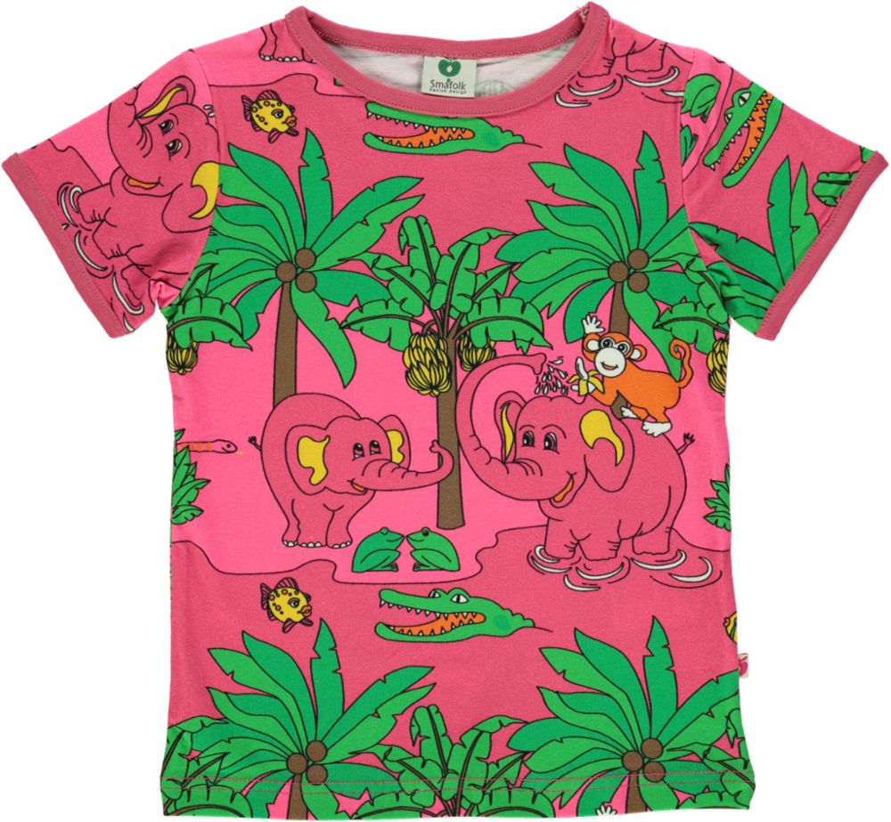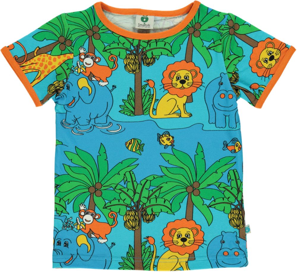 T-Shirt mit Dschungeldruck in Småfolks ganz eigenem, einzigartigen Retro-Stil. Das T-Shirt wurde in Dänemark entworfen und aus 100 % bester Bio-Baumwolle und Elasthan hergestellt, was das T-Shirt dehnbar und weich macht und gleichzeitig den Sitz behält. Småfolks T-Shirts ist in schönen leuchtenden Farben mit dem Ihr Kind spielen, wachsen und seine Fantasie erkunden kann, während sich das Kind frei bewegen kann.