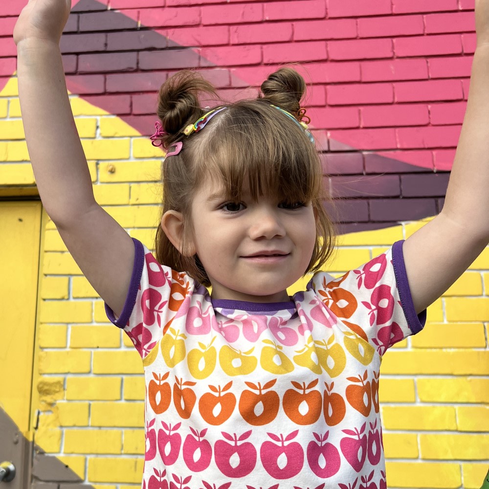 T-Shirt mit Småfolks klassischem Apfeldruck in Småfolks ganz eigenem Retro-Stil. Das T-Shirt wurde in Dänemark entworfen und aus 100 % bester Bio-Baumwolle und Elasthan hergestellt, was das T-Shirt dehnbar und weich macht und gleichzeitig den Sitz behält. Småfolks T-Shirts ist in schönen leuchtenden Farben mit dem Ihr Kind spielen, wachsen und seine Fantasie erkunden kann, während sich das Kind frei bewegen kann.