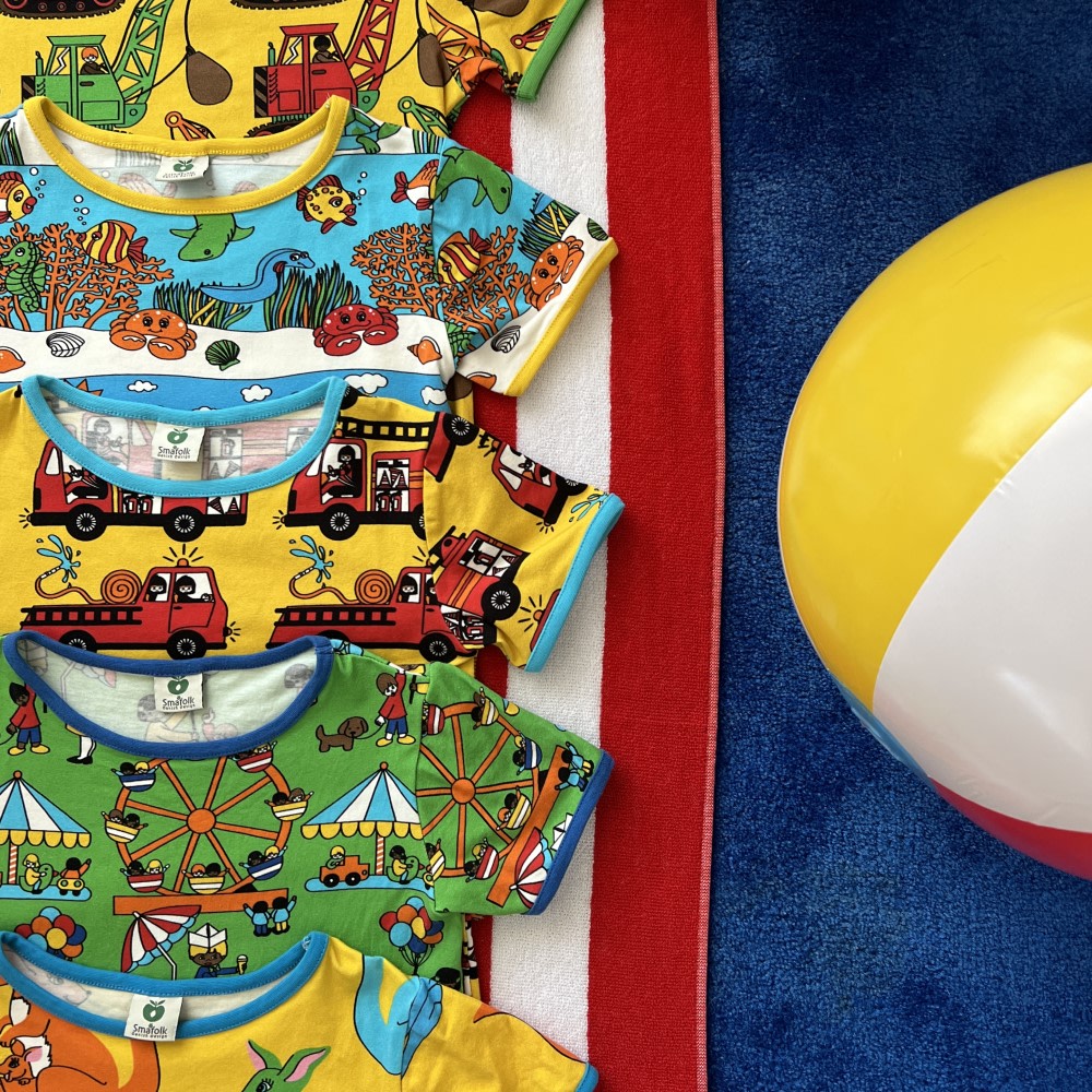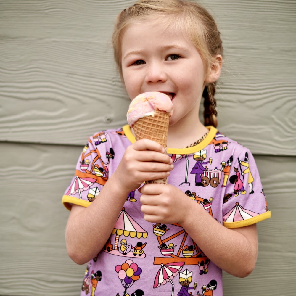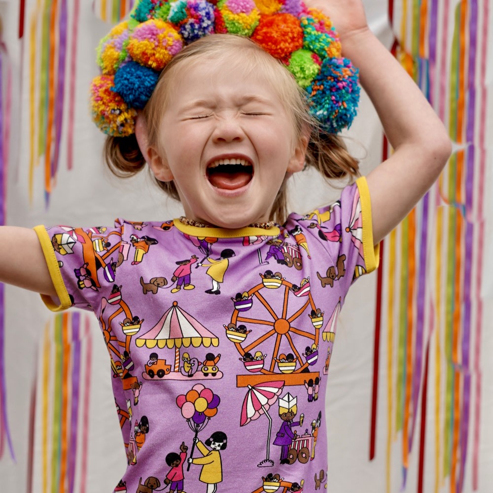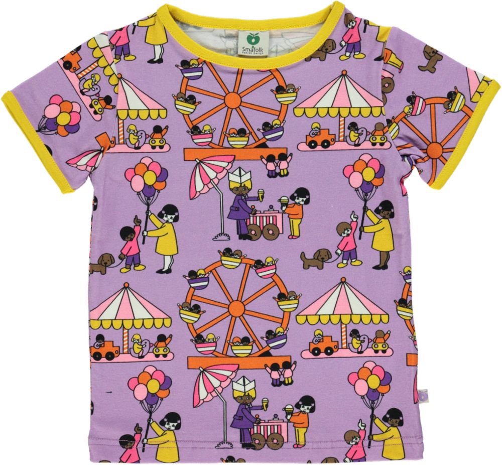 T-Shirt mit Rummelplatz-Print im ganz eigenen, einzigartigen Retro-Stil von Småfolk. Das T-Shirt wurde in Dänemark entworfen und aus 100 % bester Bio-Baumwolle und Elasthan hergestellt, was das T-Shirt dehnbar und weich macht und gleichzeitig den Sitz behält. Småfolks T-Shirts ist in schönen leuchtenden Farben mit dem Ihr Kind spielen, wachsen und seine Fantasie erkunden kann, während sich das Kind frei bewegen kann.