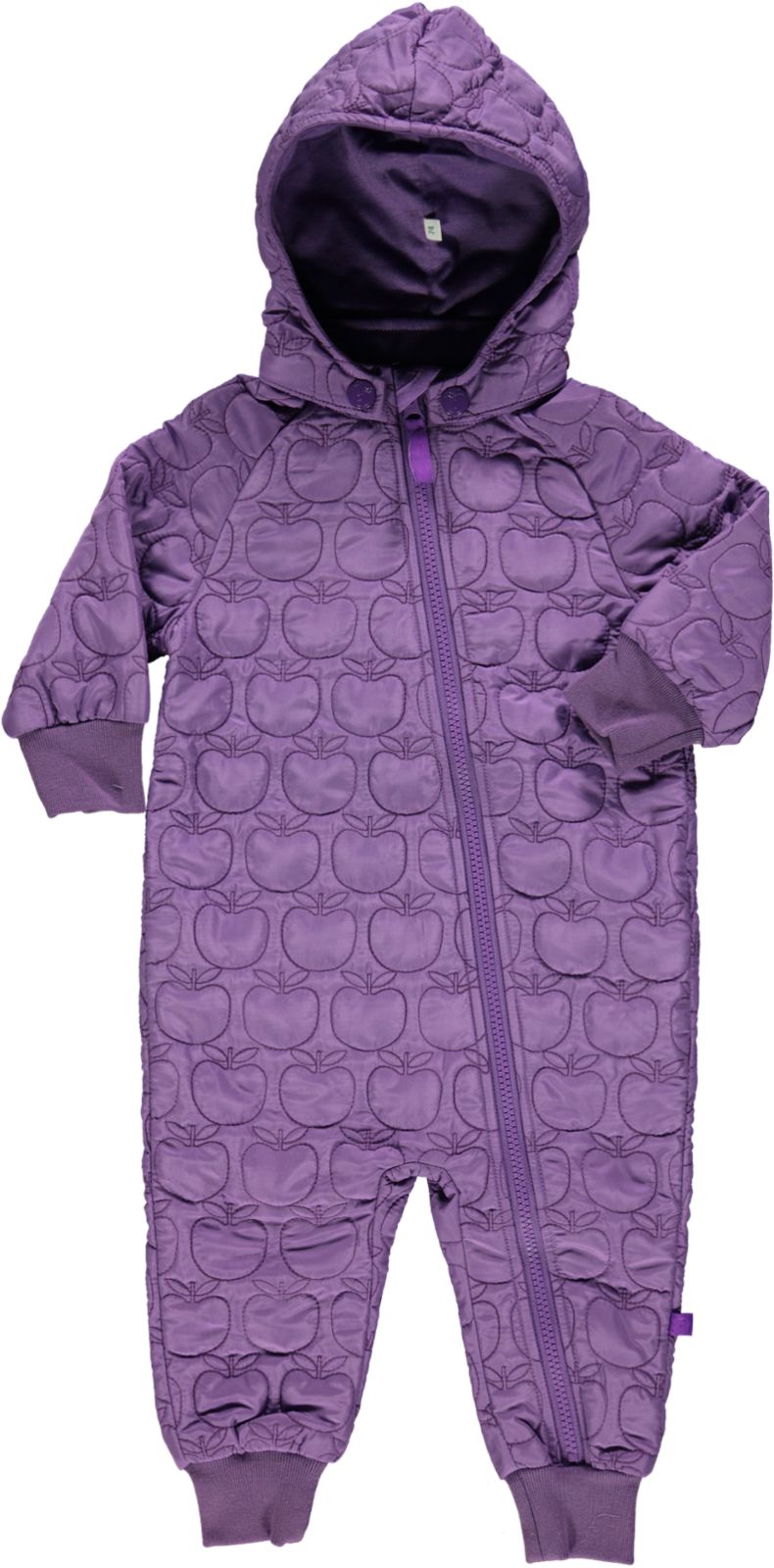 Gesteppter Thermoanzug mit Äpfeln, hergestellt aus strapazierfähigem Polyester, mit weichem Baumwolljersey auf der Innenseite. Der Anzug verfügt über eine Bionic-Finish® Eco-Beschichtung, die den Anzug wasserabweisend und gleichzeitig fluoridfrei macht.
