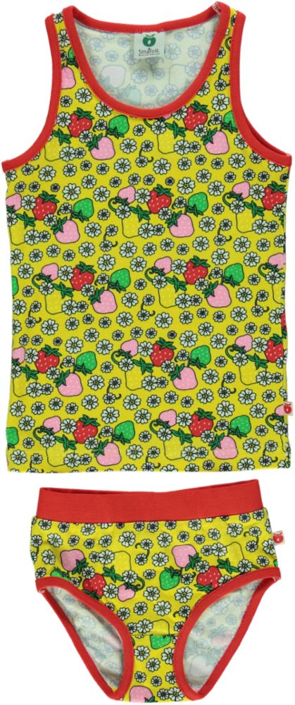 Underwear for girls with strawberry print.Småfolk´s underwear set is in beautiful clear colour and has soft elastic at the waist.The underwear set is produced in100% organic cotton andelastane which makes thefabric stretchable.