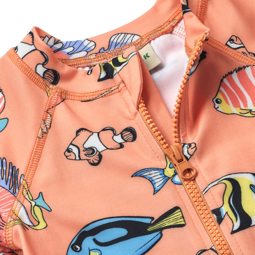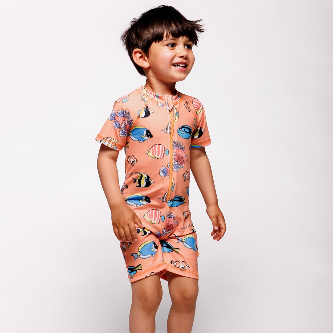 Entdecken Sie die Schönheit des Ozeans mit unserem verspielten Druck, der eine Vielzahl bunter Fische zeigt, die in Harmonie zusammen schwimmen. Bei der Gestaltung der Drucke von Småfolk liegt der Schwerpunkt auf fröhlichen Farben, Details und Geschichten. Unsere Badebekleidung ist eine großartige Möglichkeit, der Garderobe Ihres Kindes Persönlichkeit zu verleihen und gleichzeitig dafür zu sorgen, dass sich Ihr Kind den ganzen Tag wohlfühlt.