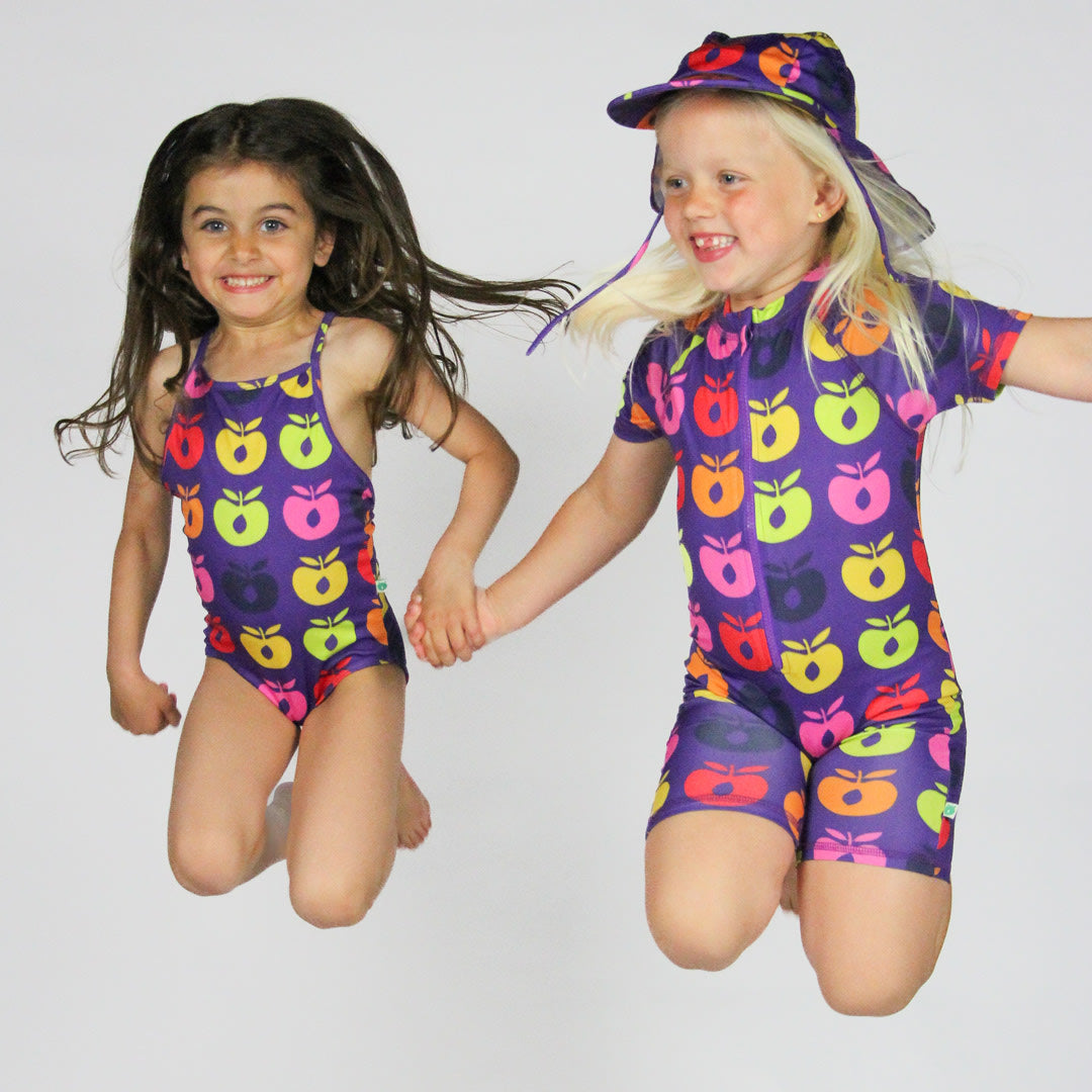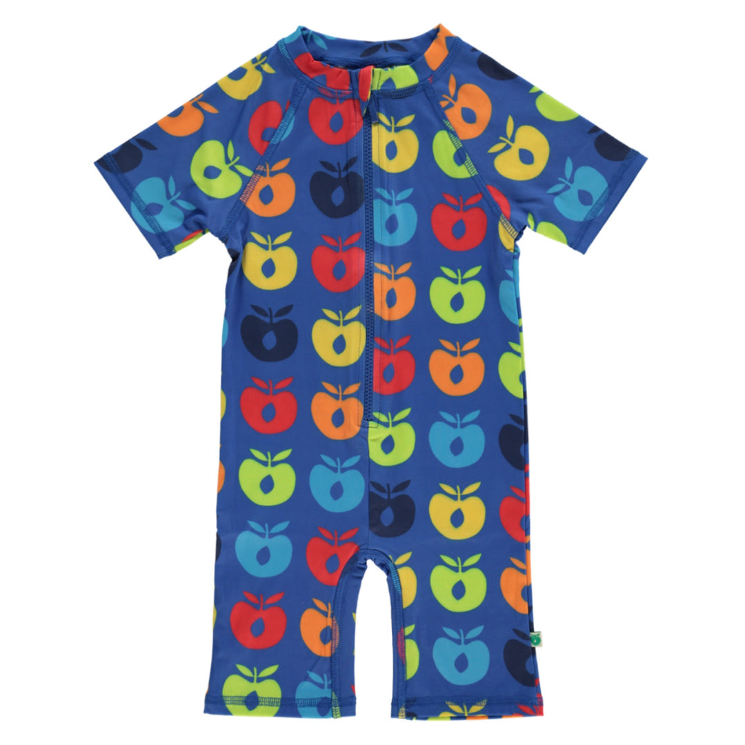 Badeanzug mit Apfelaufdruck, hergestellt aus dehnbarem und strapazierfähigem Polyester. Die Badebekleidung von Småfolk schützt die Haut Ihres Kindes mit dem in den Stoff eingearbeiteten UV-Faktor UPF50+.