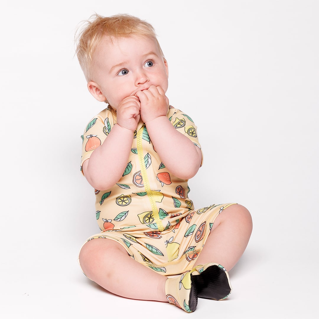 Verleihen Sie der Badebekleidung Ihres Babys mit unserem fröhlichen Aufdruck aus frischen Zitronen und Orangen eine fruchtige Note, perfekt für sonnige Tage am Strand oder Pool. Bei der Gestaltung der Drucke von Småfolk liegt der Schwerpunkt auf fröhlichen Farben, Details und Geschichten. Unsere Badebekleidung ist eine großartige Möglichkeit, der Garderobe Ihres Kindes Persönlichkeit zu verleihen und gleichzeitig dafür zu sorgen, dass sich Ihr Kind den ganzen Tag wohlfühlt.