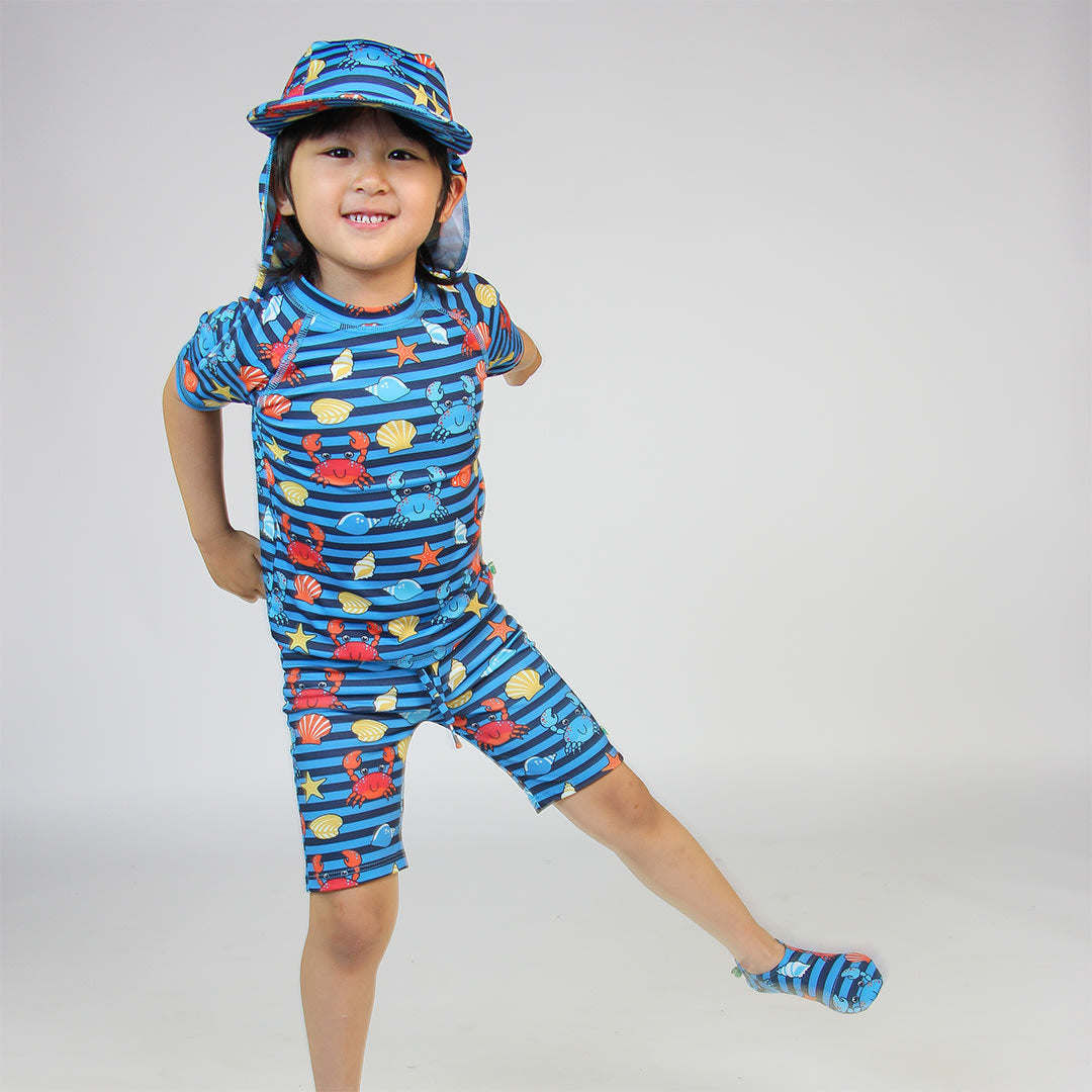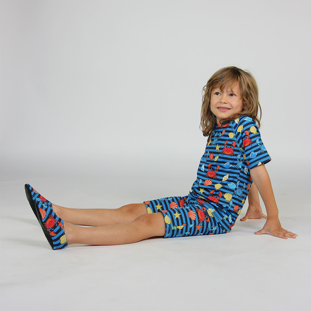 UV50-T-Shirt mit Krabben, hergestellt aus dehnbarem und strapazierfähigem Polyester. Die Badebekleidung von Småfolk schützt die Haut Ihres Kindes mit dem in den Stoff eingearbeiteten UV-Faktor UPF50+. Das T-Shirt hat eine normale Passform und kurze Ärmel. Die Badebekleidung von Småfolk wird in Dänemark mit dem Ziel entworfen, unzähligen Abenteuern und Spielen standzuhalten und auch nach mehrmaligem Gebrauch Form und Farbe zu behalten. Damit die Badebekleidung ihre schönen Farben behält, empfiehlt Småfolk, die Badebekleidung in sauberem, kaltem Leitungswasser auszuspülen. Vermeiden Sie das Trocknen in direktem Sonnenlicht und vermeiden Sie jegliche Verwendung von Wäschetrocknern. Um die glatte Oberfläche zu erhalten, empfehlen wir jeglichen Kontakt mit rauen Oberflächen zu vermeiden.
