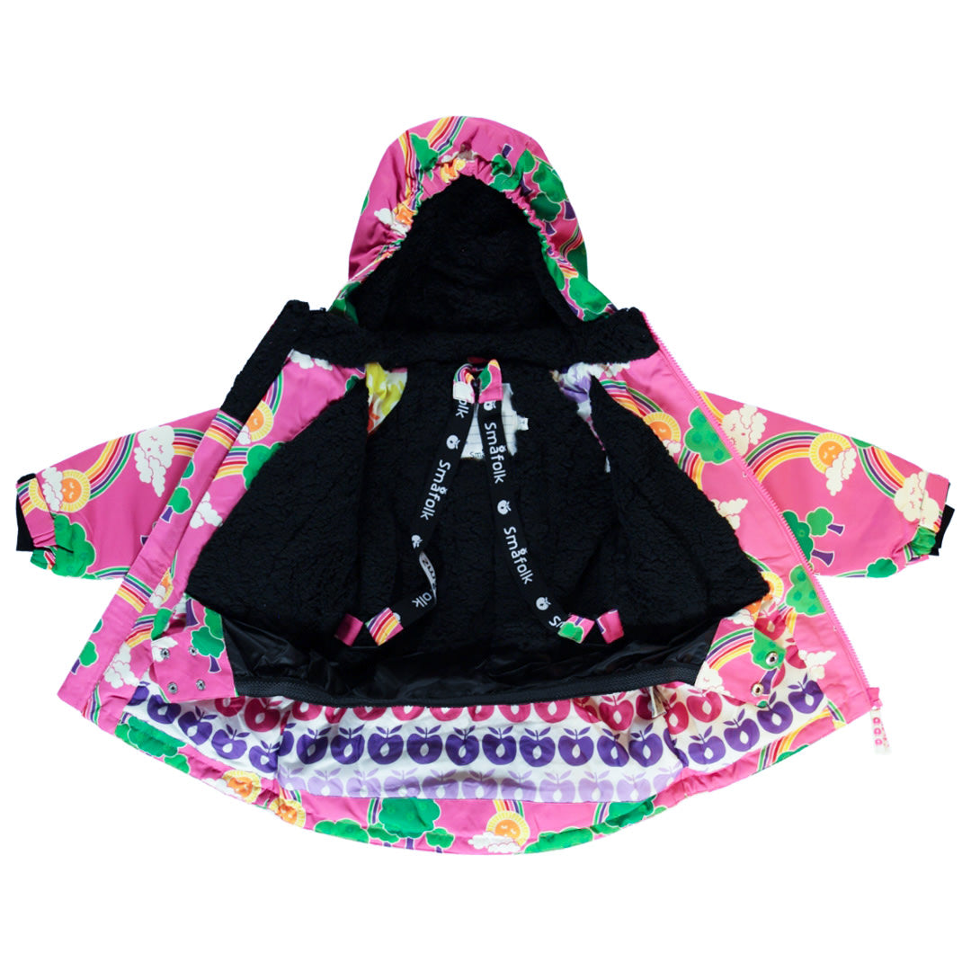 Die Winterjacke von Småfolk verfügt über eine DuPont™ Sorona®-Isolierung, die das Kind warm und trocken hält. Der Anzug ist mit BIONIC-FINISH® ECO behandelt, einer biologisch abbaubaren Oberflächenbehandlung. Die Behandlung verhindert, dass Feuchtigkeit in den Stoff eindringt, während überschüssige Körperfeuchtigkeit automatisch an die Oberfläche des Materials transportiert wird, wo sie verdunstet. Die Behandlung ist frei von fluoridhaltigen Substanzen. Die Jacke ist schnee- und wasserabweisend, schmutzabweisend und winddicht.