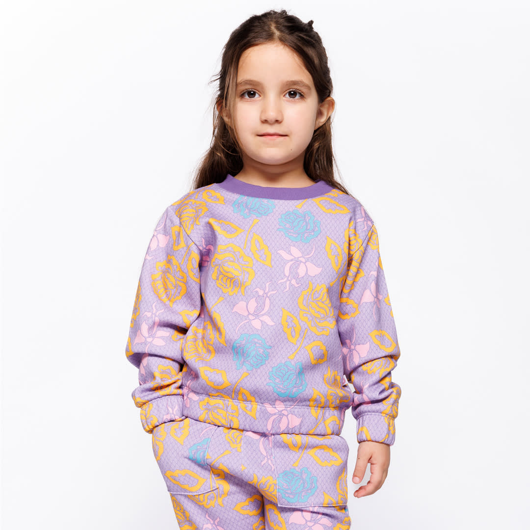 Sweatshirt aus gebürstetem Sweat material mit Rosen, hergestellt aus 100 % Bio-Baumwolle. Dieses Sweatshirt ist OEKO-TEX Standard 100® zertifiziert, was bedeutet, dass der Pullover hergestellt und auf Schadstoffe getestet wurde, sodass Sie sich um die Haut und Gesundheit Ihres Kindes kümmern können.